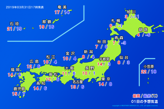 晴れる所が多いですが、先島地方は曇りや雨でしょう。海上は、波が高いため注意が必要です。