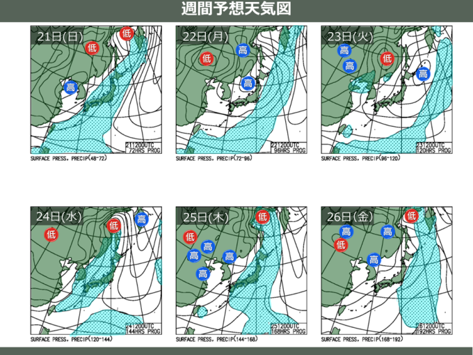 ・20日(土)~21日(日)、24日(水)~25日(木)は広い範囲で雨、積雪の多い所では融雪やなだれに注意