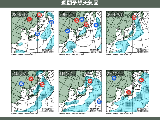 27日(土)にかけて冬型の気圧配置が続き、北日本や北陸は荒天に注意・警戒が必要です。28日(日)は高気圧に覆われ太平洋側を中心に晴れるでしょう。週明け29日(月)以降は、日本海側では雪や雨の日が多く、太平洋側は晴れ間のでる日が多くなる見込みです。