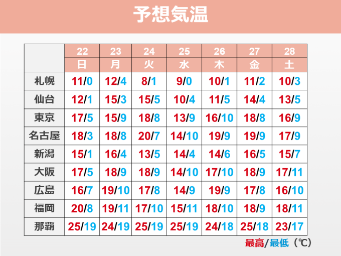 週間予報【3月22日(日)~28日(土)】
