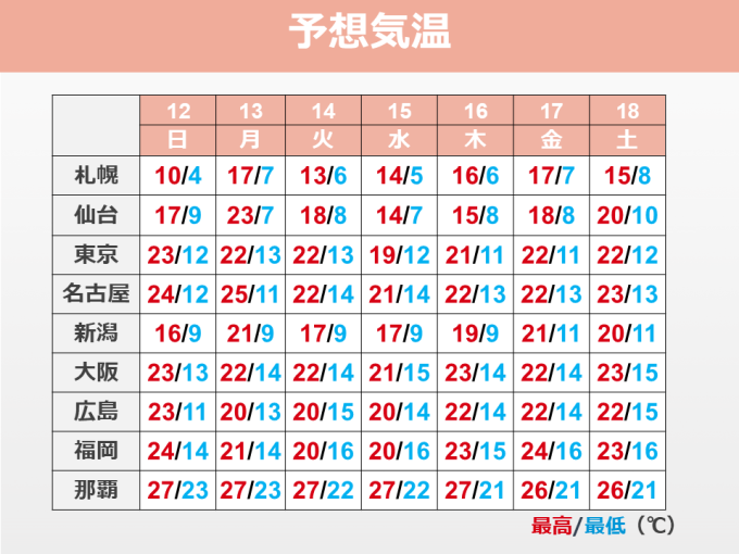 週間予報【4月12日(日)~18日(土)】