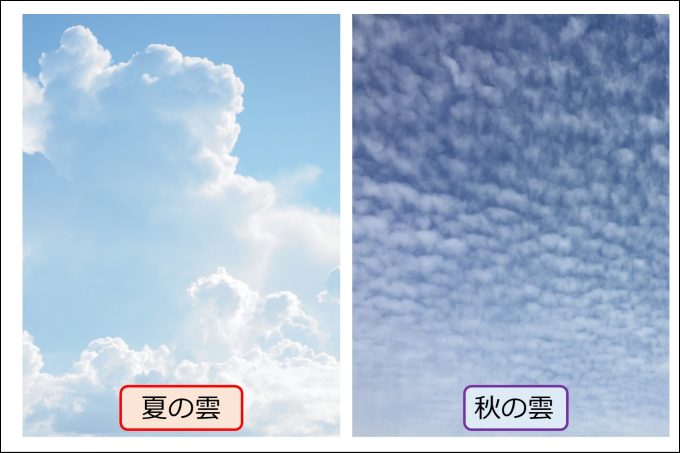 これからは秋の巻雲(すじ雲)や巻積雲(うろこ雲)などが見られることが多くなるでしょう。空を見上げて、雲を眺めて、秋の深まりを感じてみて下さい。